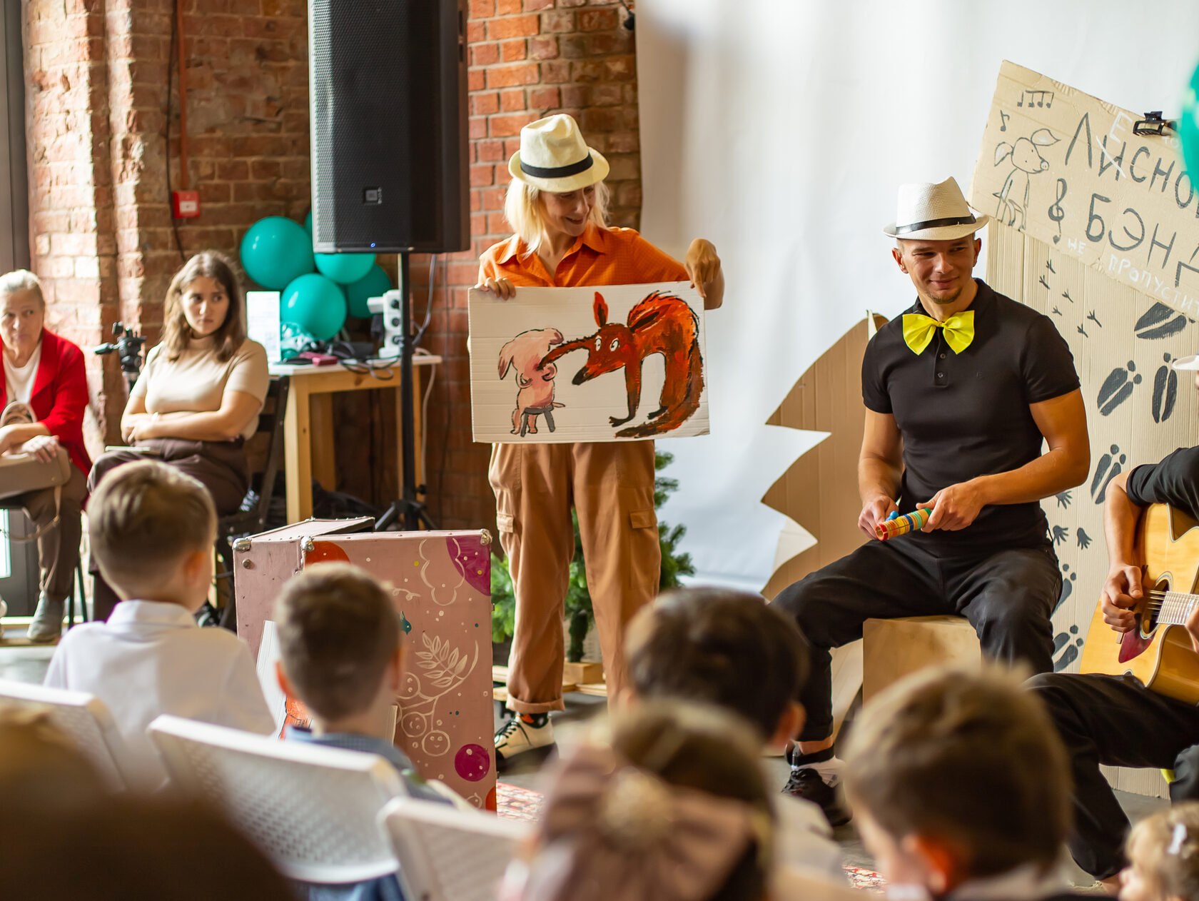 Зрители погрузились в спектакль-музыкальную читку про битву поросёнка с комарами — лёгкий, смешной и с намёком: школа начинается, но без юмора никуда.